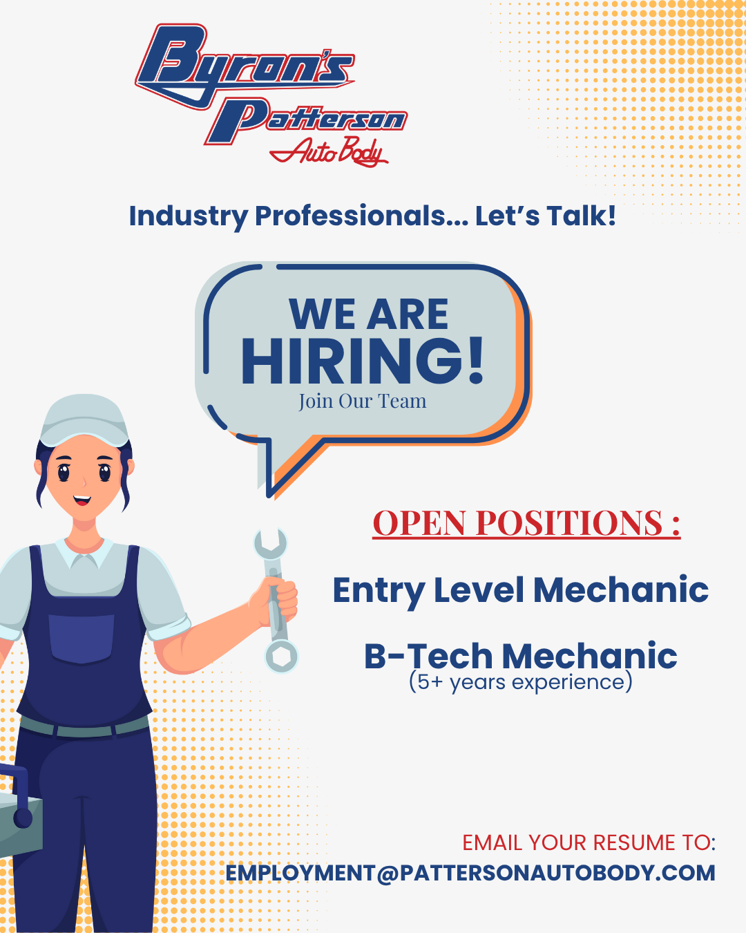 Trust the certified professionals at Byron’s Patterson Auto Body to get you back on the road with confidence!